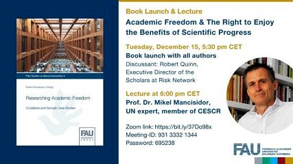 14. December 2020 news “Academic Freedom & The Right to Enjoy the Benefits of Scientific Progress” – Book Launch & Lecture Tuesday, Dec 15, 5:30 pm CET Zoom-Link: https://bit.ly/37Do98x Last update: 14. December 2020 - 10:35