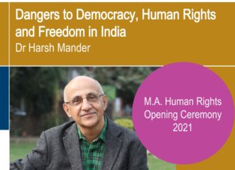 FAU’s interdisciplinary MA Human Rights opens the 2021/22 academic year with an inaugural talk by Dr. Harsh Mander from India. Students of other degree programs are cordially invited to attend. The talk entitled „Dangers to Democracy, Human Rights and Freedom in India“ will take place on 25.10. at 6:15pm in the auditorium of FAU’s main building (Aula im Schloss). Please note the “3G” Covid rule and have documentation ready.