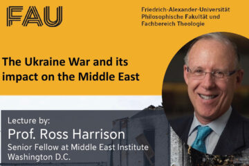 We cordially invite you to a lecture by Prof. Ross Harrison (Middle East Institute, Washington DC). Prof. Harrison is a renowned expert on US foreign policy in the MENA region. He is a Senior Fellow at the Middle East Institute and also on the faculty in the Political Science department at the University of Pittsburgh.The lecture with the title „The Ukraine War and the Impact on the Middle East“ will take place on 16 May 2023, 18.15-19.45, Kochstraße 4, 91054 Erlangen, Raum 05.054.